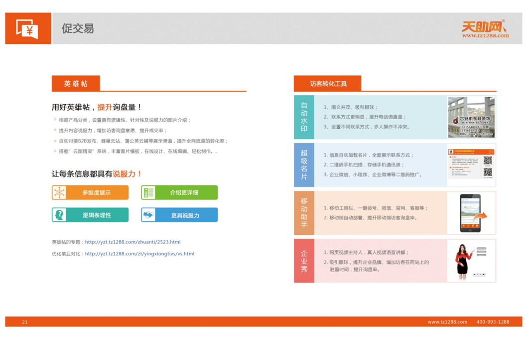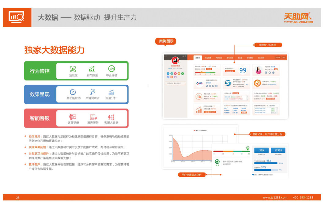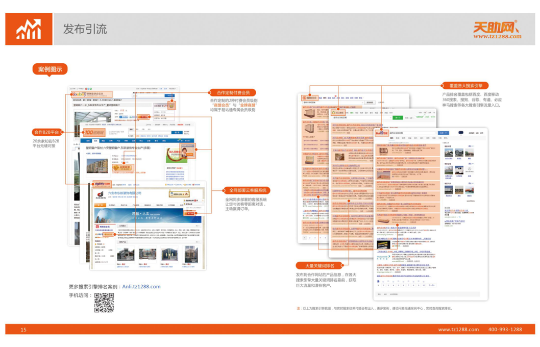 天助網是知名的互聯網平臺,高新技術企業,在深圳、咸寧荊門、荊州等地擁有數個工業電商產業園,總面積超過3萬平米。天助網13年專注中小企業全網生態整合營銷,先后榮獲深圳知名品牌。2018中國產業互聯網大會推薦服務商等。天助網擁有核心的B2B聯合體資源,是中小企業全網生態整合營銷的定義者,天助網在業內創新提出互聯網生態整合營銷理念,并與”- -呼百應、中國供應商、八方資源網"等40余家知名B2B平臺達成深度戰略合作,共同優化與構建B2B行業的全新生態。目前,天助網在全國擁有400多家本地服務商,超過5000名專業電子商務顧問,業界稱之為“天助系"。天助網平臺累計注冊用戶達到1000余萬家,付費用戶超過10萬家,為各合作平臺輸送付費會員超過100萬家。13年來。天助網始終以創新作為企業發展的基石,公司先后獲得42項著作權及專利證書、16項商標注冊證書;未來,天助網將繼續開拓創新,全力支撐互聯網生態整合營銷與中小企業電子商務發展。